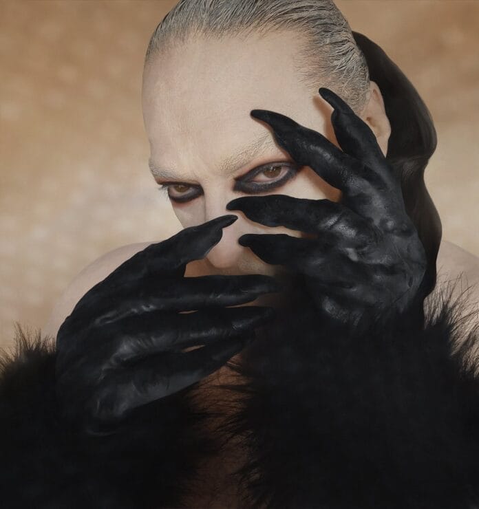 Among Macri’s compelling pieces, Male Head with Gloves (2024) stands as a striking embodiment of his artistic philosophy. At first glance, the work appears to be a portrait of a man framed by his own hands. But a deeper look reveals something far more complex: a dialogue between the human and the primal, the refined and the feral.