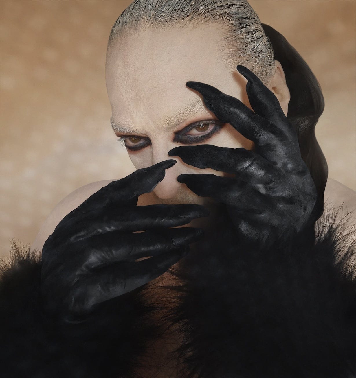 What makes Male Head with Gloves extraordinary is how it collapses the divide between the maker and the made. Macri does not merely represent transformation; he enacts it. His body becomes a vessel for metaphor, his image a theater where identity performs its endless variations.