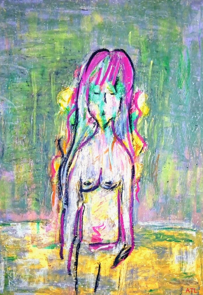 Uno degli aspetti più distintivi della produzione pittorica di Anna Teresa Laurita è l’indagine sulla femminilità intesa come spazio simbolico ed emotivo. Nell’opera descritta, l’artista rappresenta un’entità femminile dall’aspetto quasi adolescenziale, espressione della fase più pura e sognante dell’evoluzione della donna.