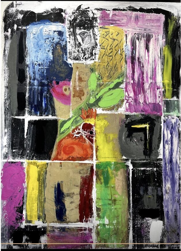 Bibi’s paintings often echo the visual language of Mexican folk art, bold colors, symbolic motifs, and a strong sense of narrative, while also embracing the abstraction and fluidity of modern techniques. She is best known for her acrylic and mixed media works, which allow her to experiment with textures, layering, and unexpected materials.
