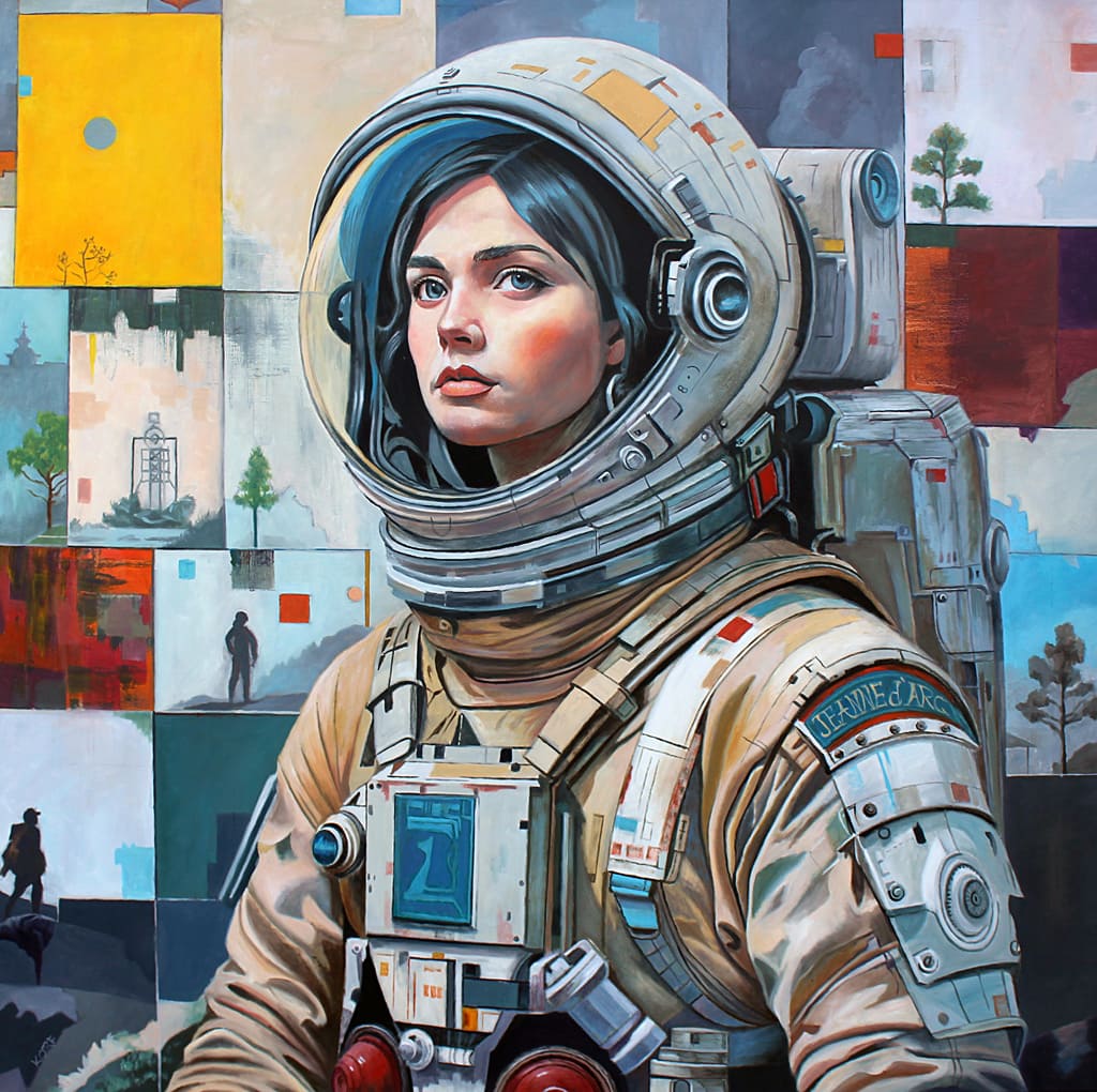 Korf’s work captures the emotional and philosophical weight of stepping into the unknown. It reflects both the promise of discovery and the unsettling reality of a future where technology and nature exist in a fragile balance.