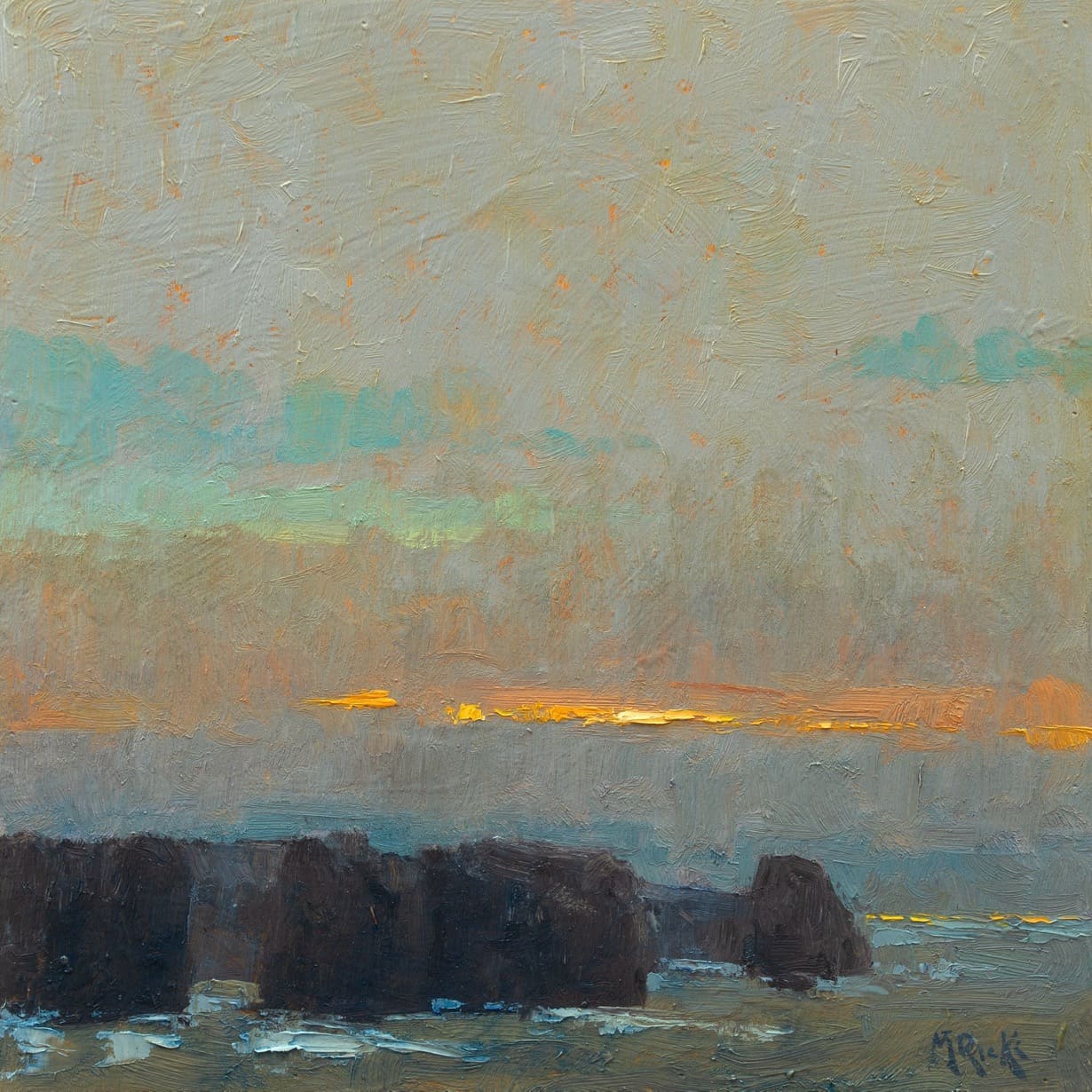 Ricks continues this tradition with a distinctly modern voice. His works are not literal depictions of place but emotional interpretations of it. Each brushstroke conveys the rhythm of wind, the stillness of dusk, or the faint warmth of a receding sun. The light in his paintings feels not merely observed but remembered, filtered through the heart as much as through the eyes.