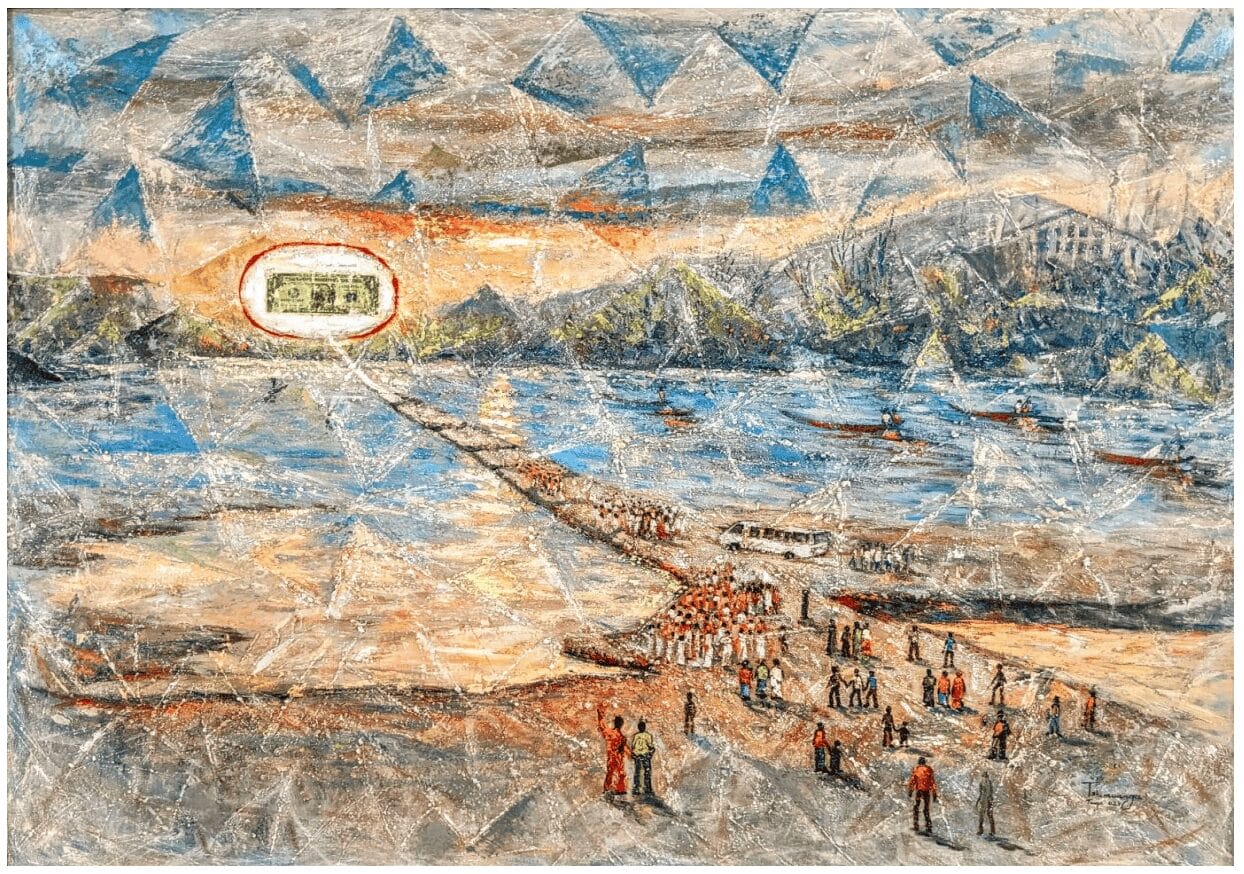 This period of discovery and collaboration played a vital role in shaping Tshimwanga’s approach to art. He learned that painting was not just about representation, but about emotion, symbolism, and the intimate connection between the artist and the viewer.